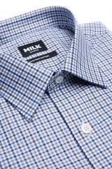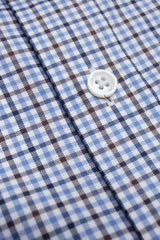 An easy-going deep brown and blue multi check, this fabric is woven in Europe with a 100s two-ply thread count. A perennial favourite, this fabric combines supreme comfort, incredible performance and the optimum weight. The fine twill weave gives it a sharp look, while retaining good wrinkle-resistance. This shirt is sure to become a staple in your business casual wardrobe.