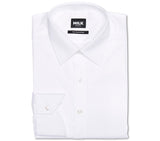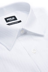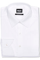 This dress shirt is made from the finest 140s striped Italian poplin. Crafted with a semi-spread collar and button cuffs, the royal weave combined with rich fibers create a shirt with a slight sheen, making it the perfect choice for occasions or the office.