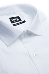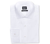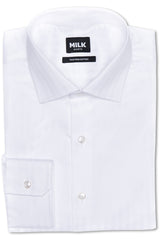 Every man needs a formal white herringbone shirt in his arsenal. This shirt is woven from a lustrous faint herringbone pattern, giving the classic wardrobe staple a subtle point of difference. Designed with a spread collar and single button cuffs, this shirt will match most suiting. Wear it freshly pressed to impress at important business meetings.