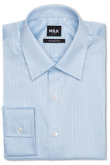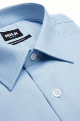 Woven in a handsome herringbone pattern, this shirt features a semi-spread collar and button cuffs. The rich shade of light blue pairs nicely with a dark suit, suitable for any business setting.