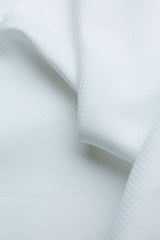This luxurious 80s two ply textured fine twill exudes understated luxury. Perfect for the office or a formal event this fabric pairs very well with sharp tailoring. From a distance it looks like a solid fabric but up close the unique textured weave is visible. Incredibly soft, especially woven for comfort, this shirt is light enough for balmy days. The subtle texture makes it a good choice for weddings or garden parties.