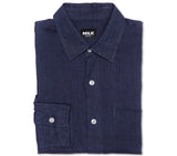 Premium Italian-woven linen produced by the Albini group, this fabric is a true hallmark of quality without compromise. Linen has long been known as the perfect casual shirt, and this one is truly the crème de la crème. The depth of its deep blue colour lends itself to be worn in a smart casual setting under an unstructured suit or forgo the pressing and let it look well-worn in and relaxed.