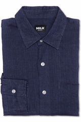 A fail-safe choice for navigating smart-casual events, this Italian-woven navy linen shirt will keep you cool even when the temperatures rise. Featuring a soft classic collar, rounded cuffs and a left chest pocket, this shirt is bound to be a perennial favorite. Try yours with jeans or chinos.