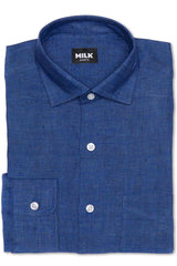 This cobalt blue linen has incredible variety of depth in color that makes the fabric incredibly interesting. The airy, open weave of the fabric allows for superior coolness and creates an exceptionally comfortable shirt for the hottest of days. Linen has a natural slubby texture and a part of their charm is how they wrinkle. All our linen shirts get better with wear, as the more they’re washed the softer they get.