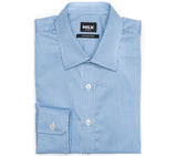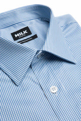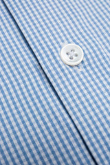An staple blue gingham featuring a spread collar and button cuffs. Crafted from a 100s two-ply twill, this check offers a point of distinction and can seamlessly transition from business to casual. Keep the spread collar neat and tidy at the office with the removable stays or go without on your days off.