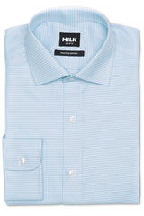 This luxurious houndstooth will be your new favourite work shirt. Finished with a cutaway collar and rounded button cuffs, this light-blue hue will look elegant with a charcoal suit.