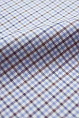 An easy-going deep brown and blue multi check, this fabric is woven in Europe with a 100s two-ply thread count. A perennial favourite, this fabric combines supreme comfort, incredible performance and the optimum weight. The fine twill weave gives it a sharp look, while retaining good wrinkle-resistance. This shirt is sure to become a staple in your business casual wardrobe.