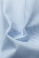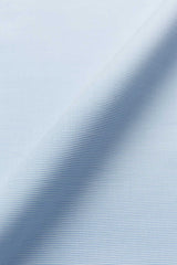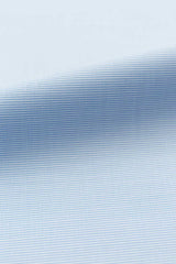 This light blue horizontal weave fabric is understated, refined with a little extra panache. Fabricated in two-ply 80s cotton poplin, it has great structure that keeps the fabric crisp throughout your work day. It’s the sort of fabric that can work for the office or the weekend, depending how you style it. Let the light-blue and white stripe complement a navy blazer and burgundy tie combination.