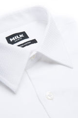 Formal shirting doesn’t get more elegant than this textured Italian jacquard featuring the perfect semi-spread collar and angled button cuffs. Versatile enough to wear for that all important meeting or a polished evening look, this shirt will make a sleek addition to your smart wardrobe.